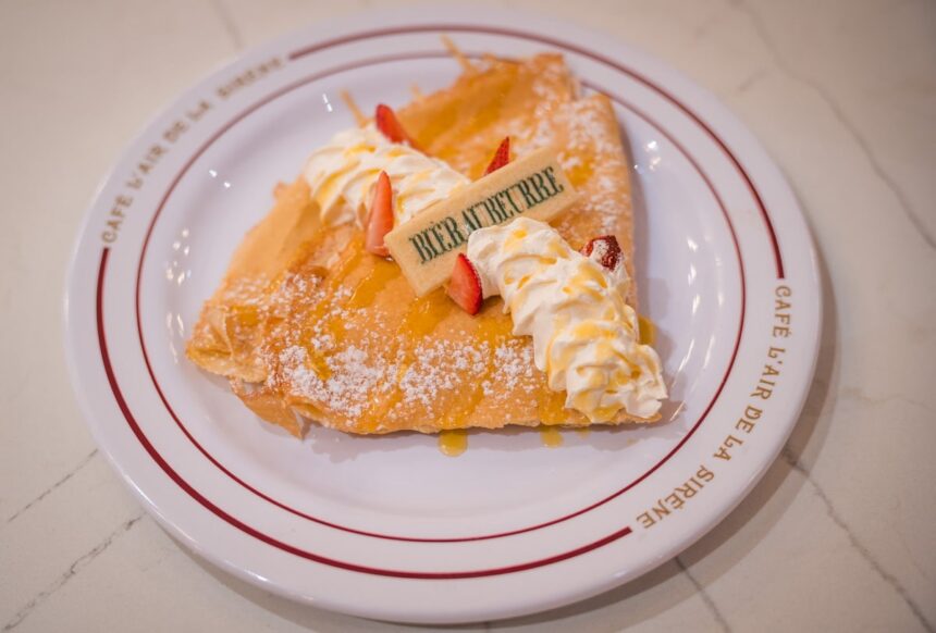 Literally everything we tried at Café L’air De La Sirène was excellent, so I’ll simply draw your attention to the Baguette Ratatouille Provençale, which punches way above its weight for a plant-based sandwich. And of course, there’s the Bierauberre Crêpe. This dessert has a massive Butterbeer tax ($19.99!), but it’s fantastic.